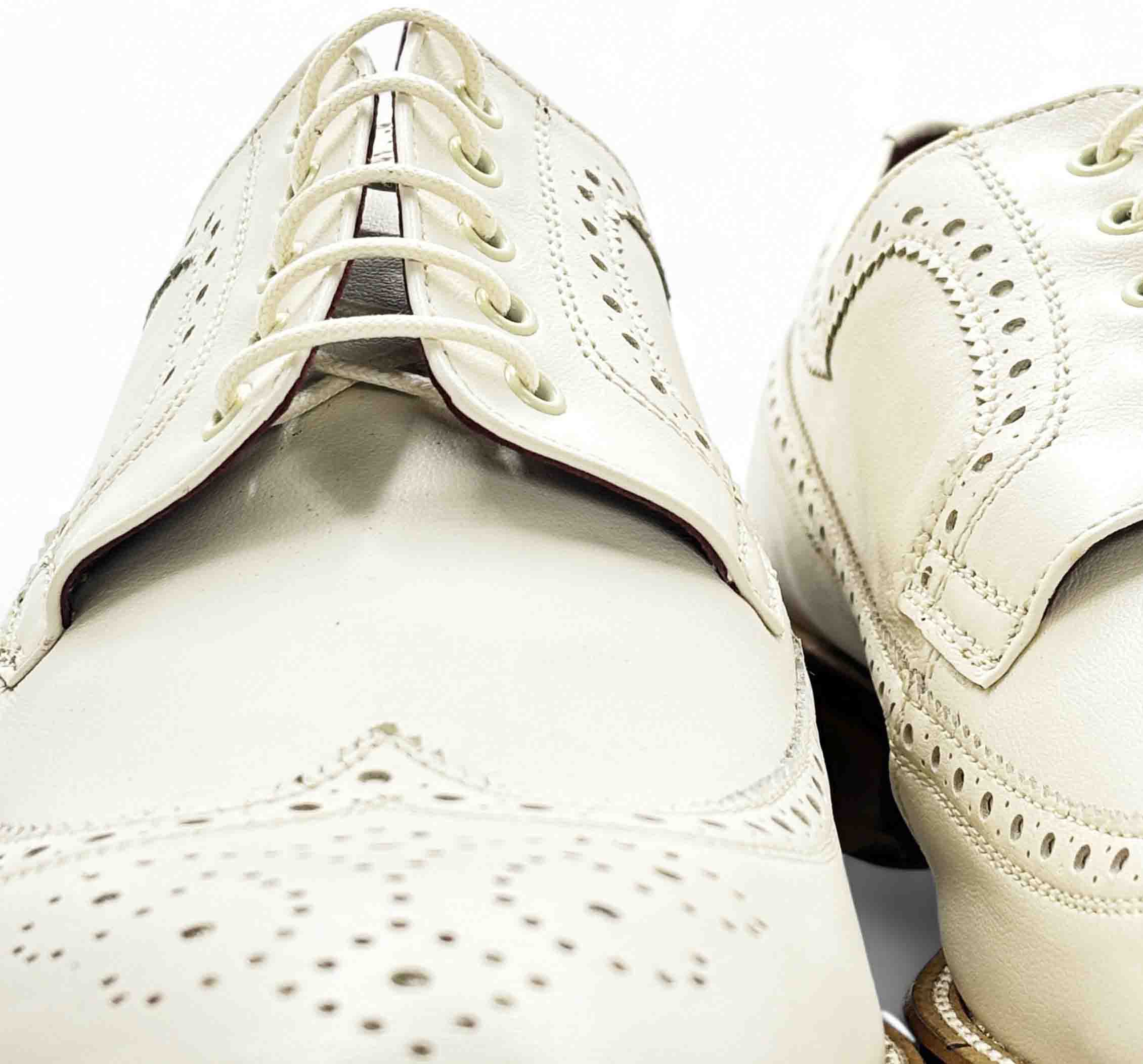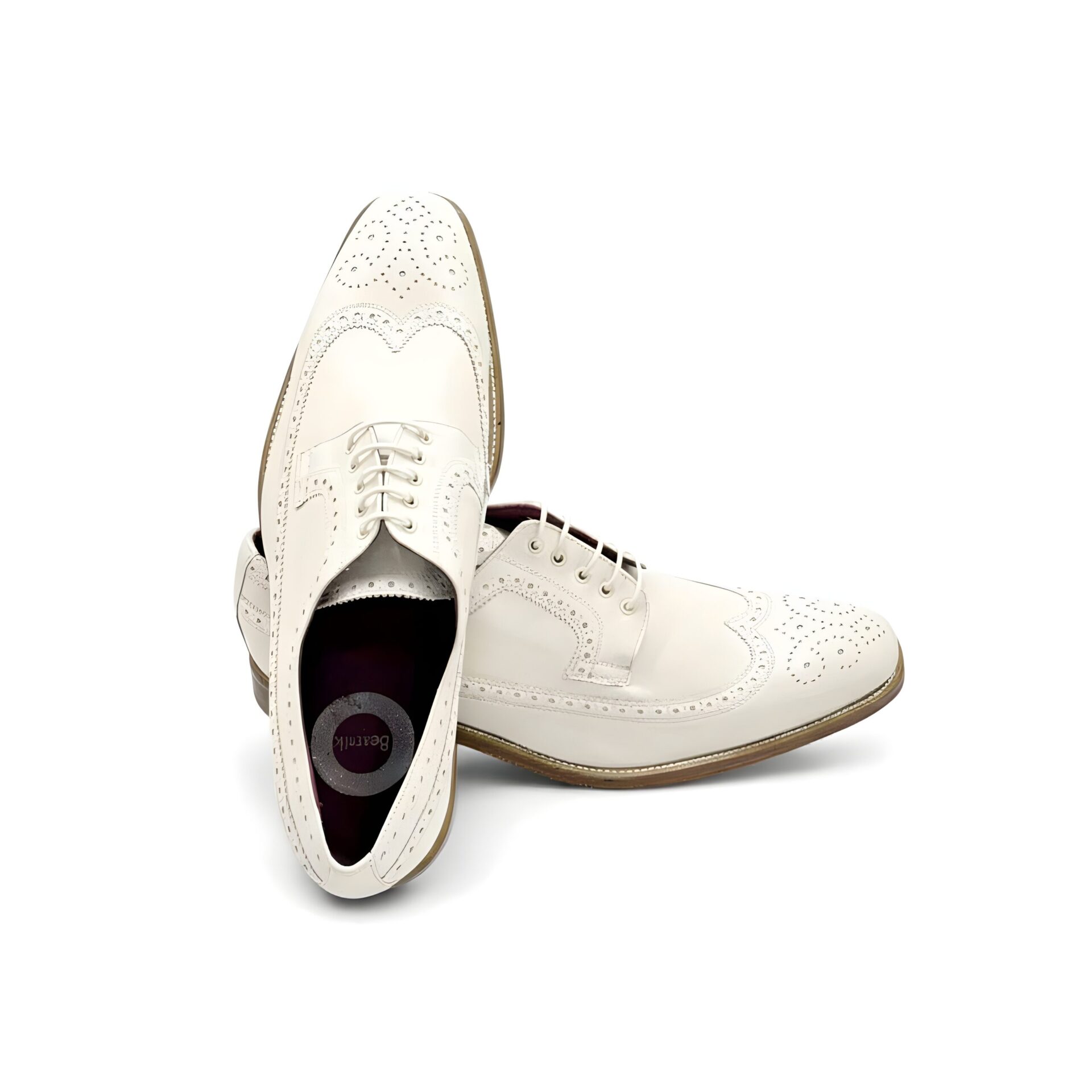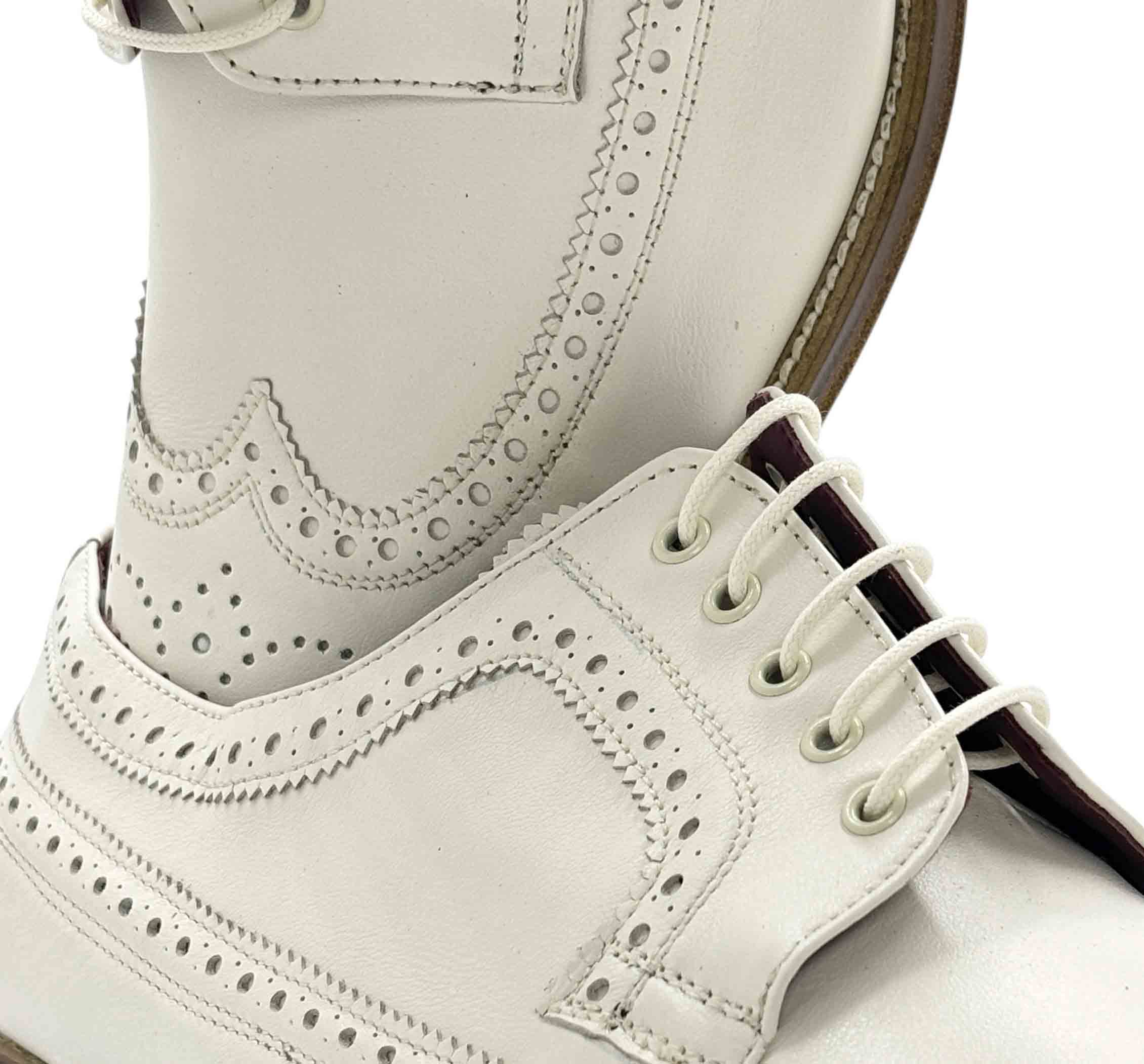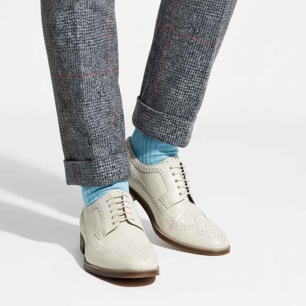 Klassisches Design, zeitgenössische Handwerkskunst. Das Modell Lucien Beige von Beatnik Shoes ist ein cremefarbener Blucher-Oxford-Schuh für Herren, der zu 100 % in Spanien hergestellt wird und den traditionellsten englischen Stil mit der Exzellenz von Kalbsleder und dem Komfort handgefertigter Schuhe verbindet.