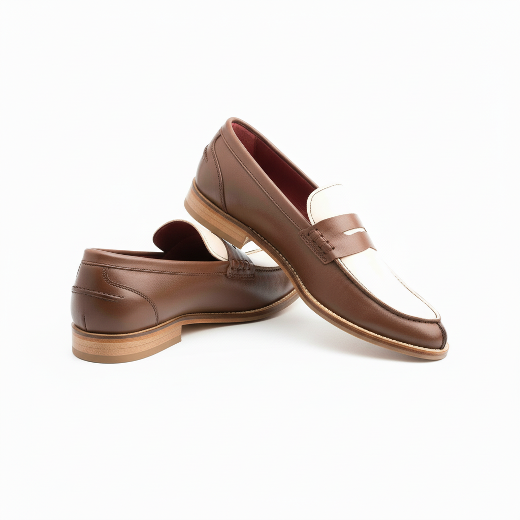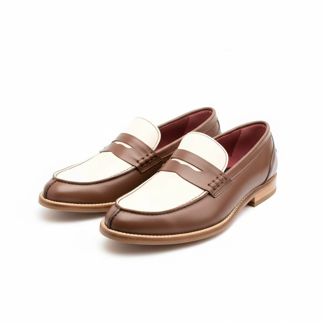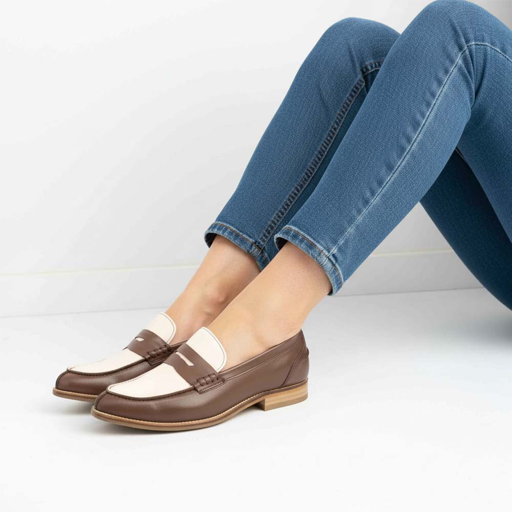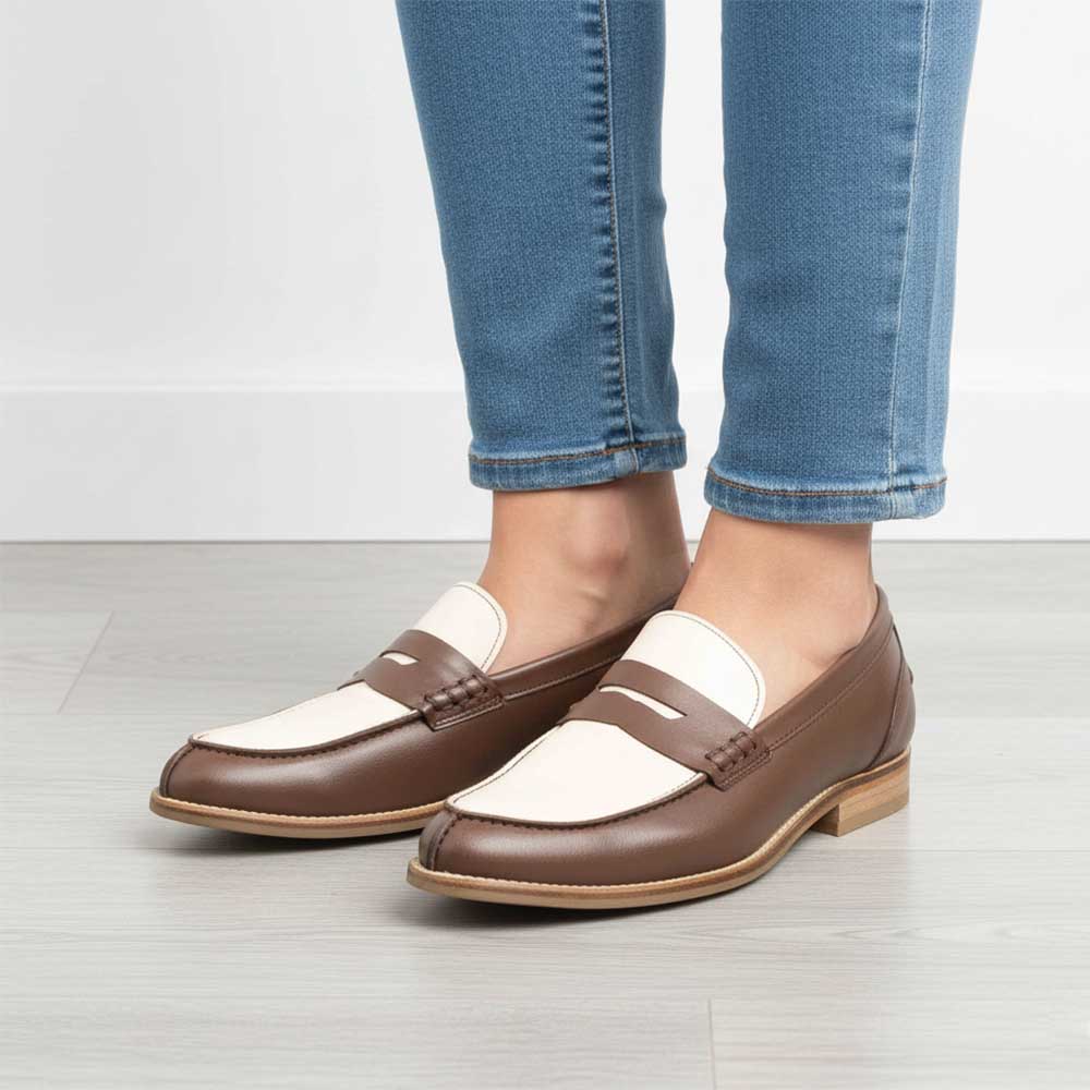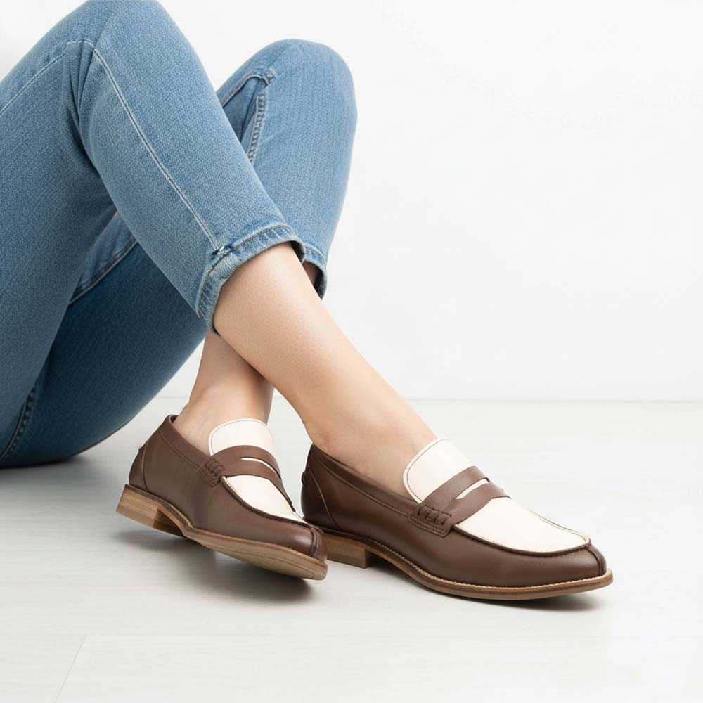 Beatnik Bessie Brown Two Tone Beige and Brown Women’s Two Tone Loafers Shoes – Handcrafted Elegance and Supreme Comfort