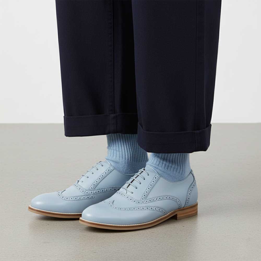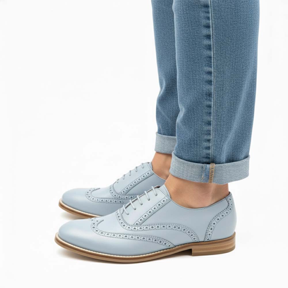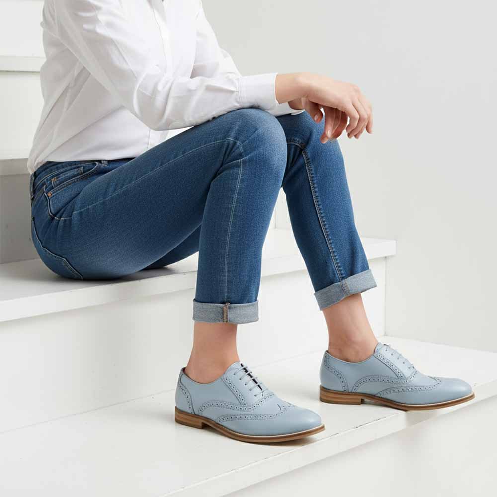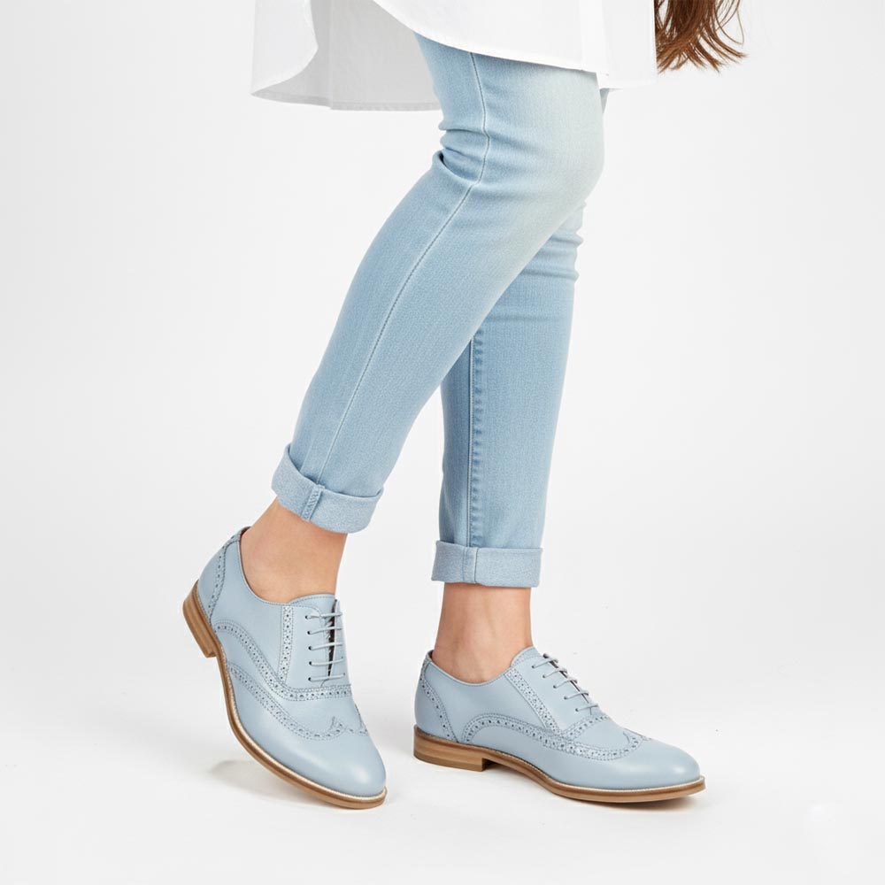 Ethel Blue Volare – Sapatos oxford de couro azul claro para mulher